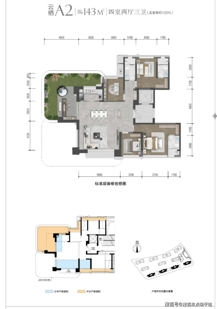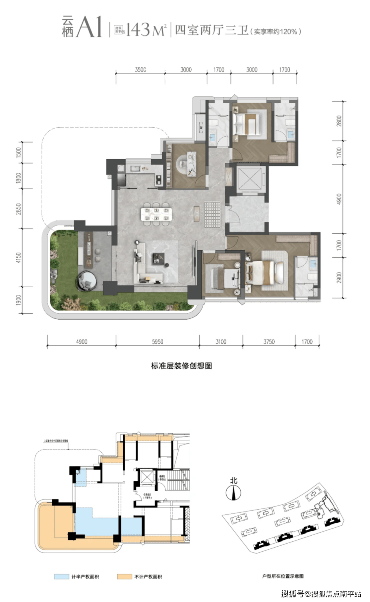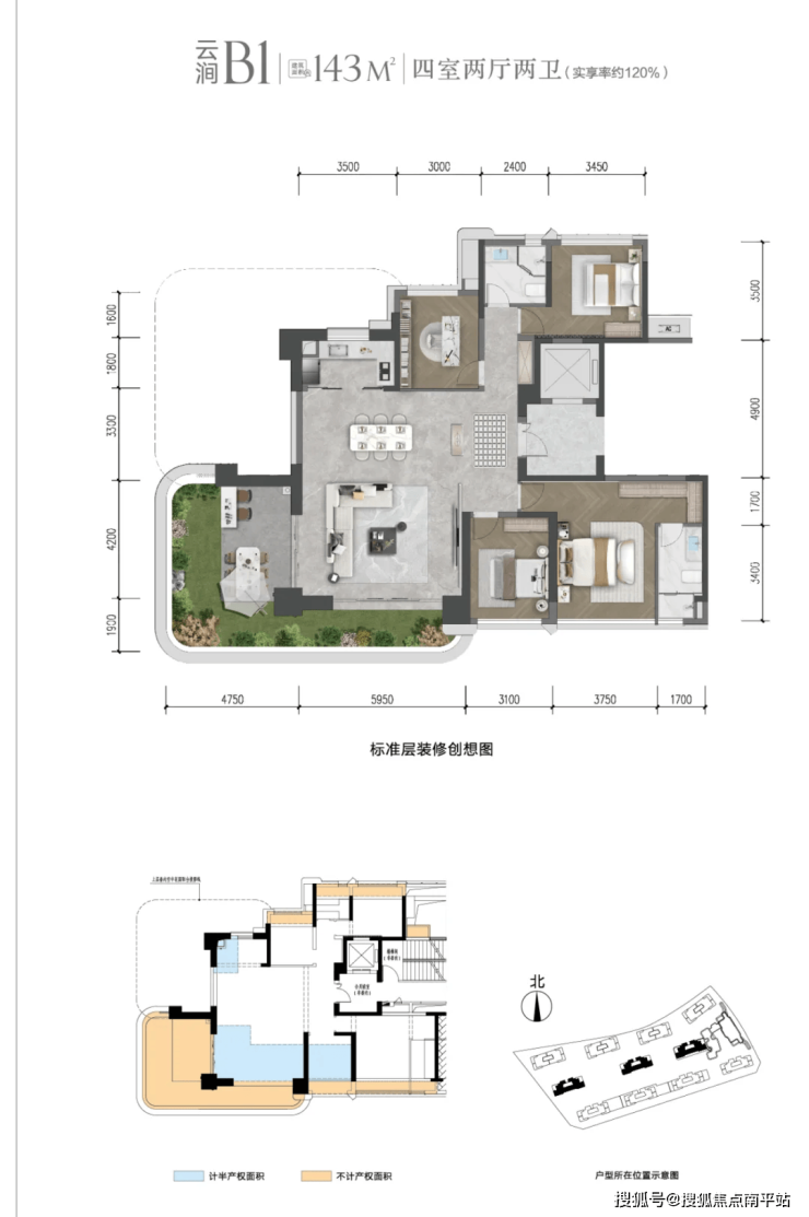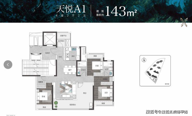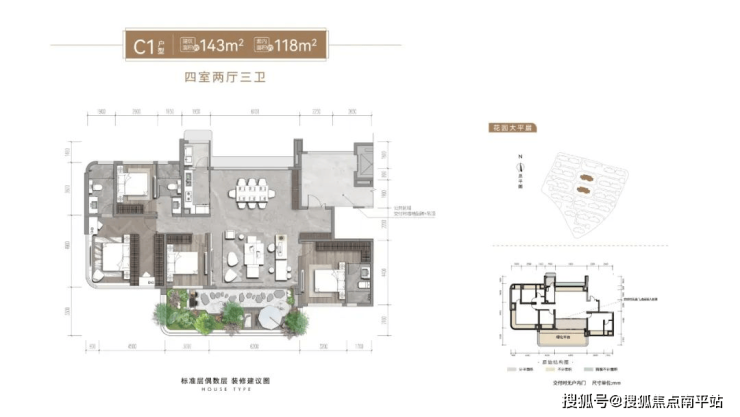 建面约143㎡方厅户型,不可复制的四重“独创性”: