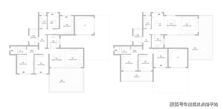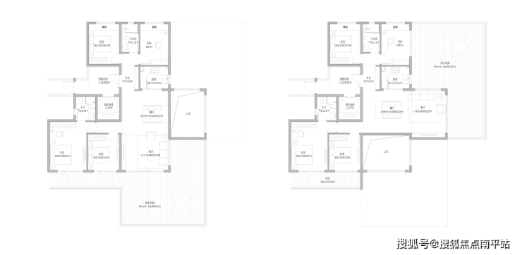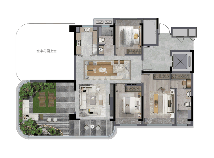 挑空露台高约6米,开间约9.2-9.4米,与室内形成LDKG一体化空间,将家庭核心空间进一步延伸。其空中花园可以根据业主需求进行各种改造。