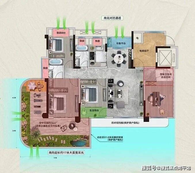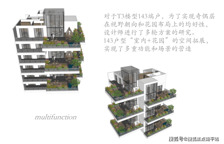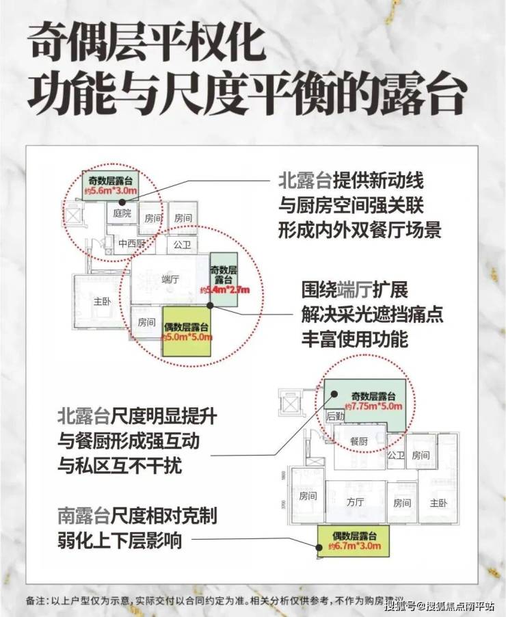 ④奇偶层平权化:北露台互动性更强,南露台采光感受更优,两者差距进一步缩小。