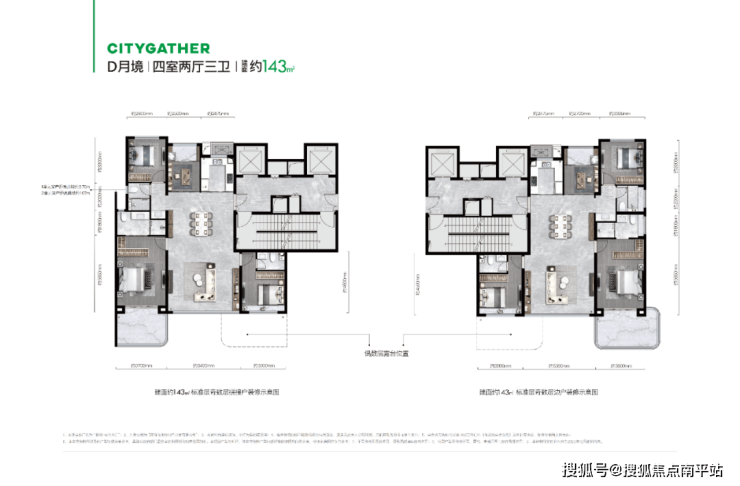 ▲建面约143㎡户型装修示意图,仅为过程稿,不作为交付承诺