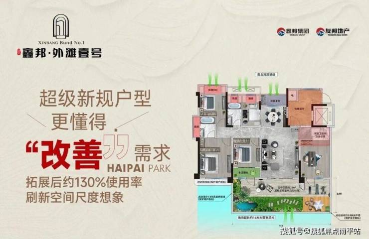 鑫邦第四代超新规143㎡享约189㎡墅级空间尺度。百变“X”空间,灵动生活奢享;拓展后约130%使用率,LDBK-G五纬一体化通厅,双总裁独立套房配置,奢适人居主场;四开间朝南。