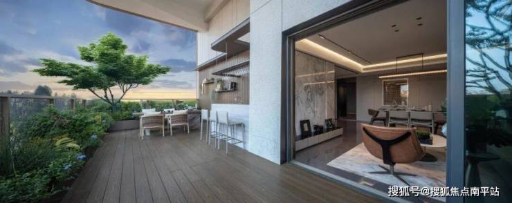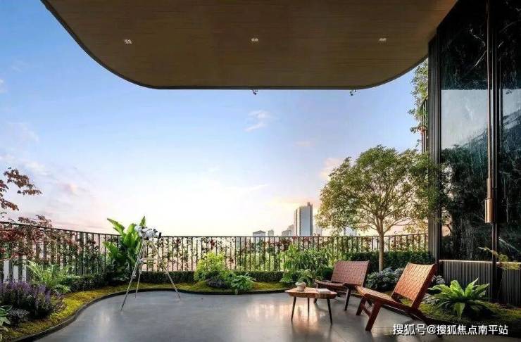 户户约36㎡空中院子与室内公区无界贯通,形成强互动关系,营造IMAX级瞰景视野,实现空间的多区域联动和场景的多元互动。