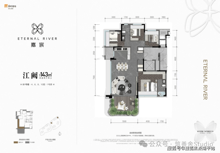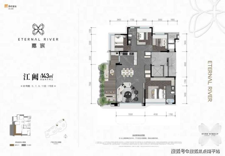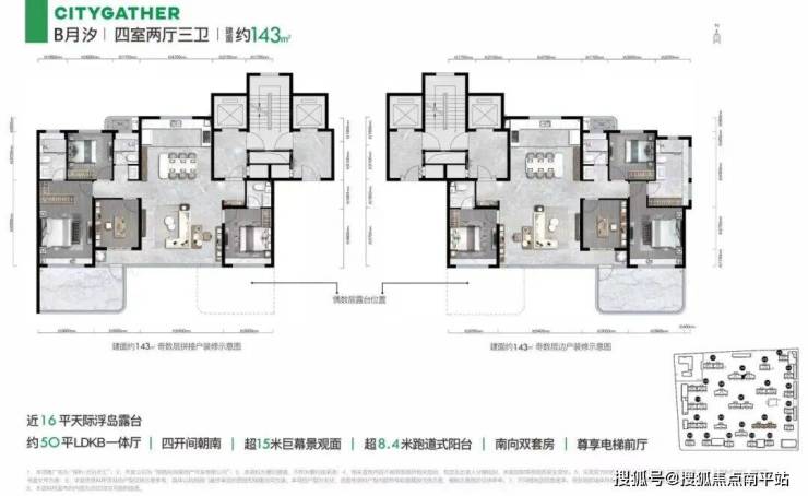 建面约143㎡端厅户型,三面采光瞰景的超前突破: