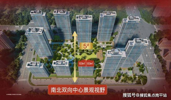 5#楼占据园区中轴C位,户户享奢阔双向视野。尽揽约2.5万㎡园林四季更迭的盛景