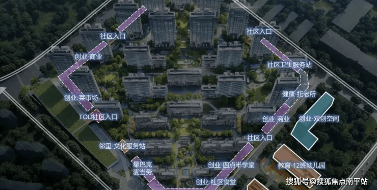 社区底层外围布置菜场、特色店铺、幼教中心、养老机构、创业支持等社区及城市公共服务功能,使城市的生活属性与便利特性得以在社区外围充分实现。
