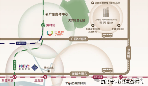 东侧是岐山路,南侧是广园快速路和富颐华庭,北侧则是天河网红盘珠江花城。而周边的吉山村旧改,配置有商业、教育、公园等功能地块,未来全面焕新后,想象空间很大。
