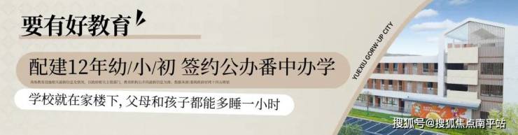 项目最大的优势就是楼下12年全龄教育,均是开发商配建的。有9班幼儿园,42班小学36班初中,中小学引入公办番禺中学办学。而且,目前也开学了!