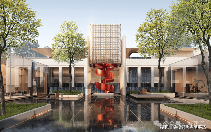 显赫礼遇,始于门庭,项目以巨幕尺度匠造 约80米宽、7米高的艺奢大门,中央艺术雕塑与“潘多拉奢石”景墙构筑视觉焦点,两侧景观水景与恢弘前场环抱相迎,以极具张力的空间序列, 开启尊崇归家仪式,界定非凡领域疆界。
