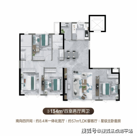 建面约134㎡四室两厅两卫户型,以沉浸式观景体验与全维舒适布局为核心亮点,精准匹配品质家庭的居住需求。阔绰开间+南向双面采光,阳光满室;近57㎡LDK一体化餐客厅,藏尽全家欢喜;约27㎡行政级主卧套房,南向飘窗伴光而居,私享尊崇。实景准现房所见即所得,一步圆满理想生活。