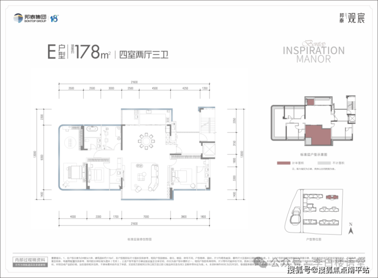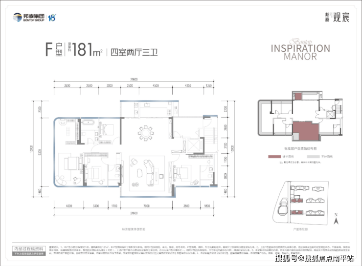 首开洋房产品(整个项目唯一1栋洋房)178㎡四房两厅三卫,比肩传统建面约240㎡户型可使用空间。