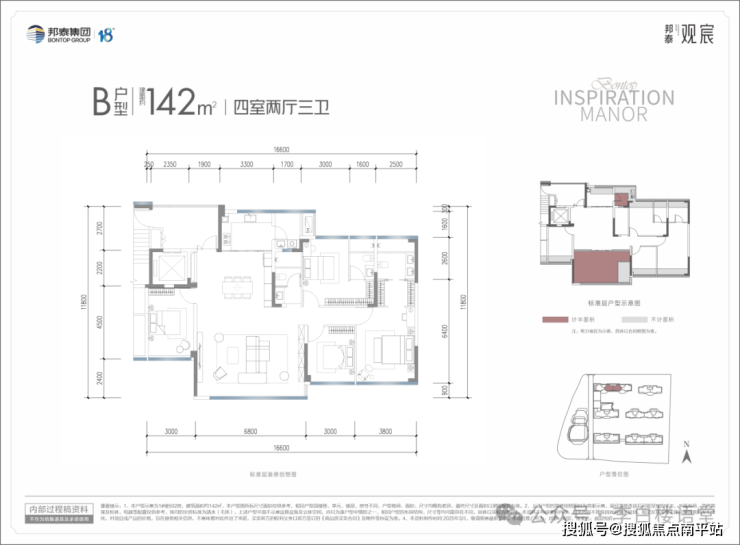 邦泰观宸首推建面约142-181㎡新规奢宅,综合得房率高达约117%-121%(含电梯厅),实得面积比肩传统190-240㎡户型。