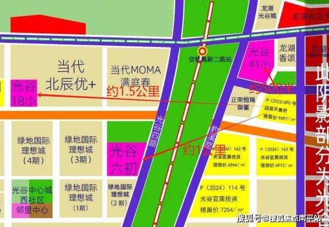 书包:书包配置高:距离光谷41小约500米、光谷18小直线距离约1.5公里、新城实验中学(六初)直线距离约1公里。项目所在片区内都是双书包的配置(18小+37小)。