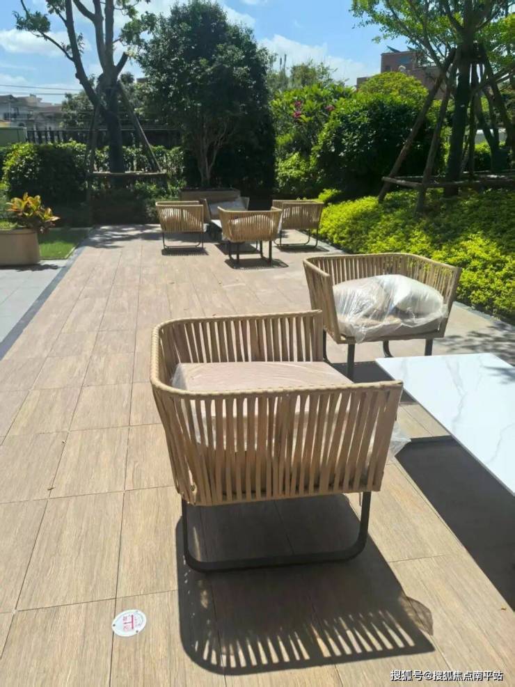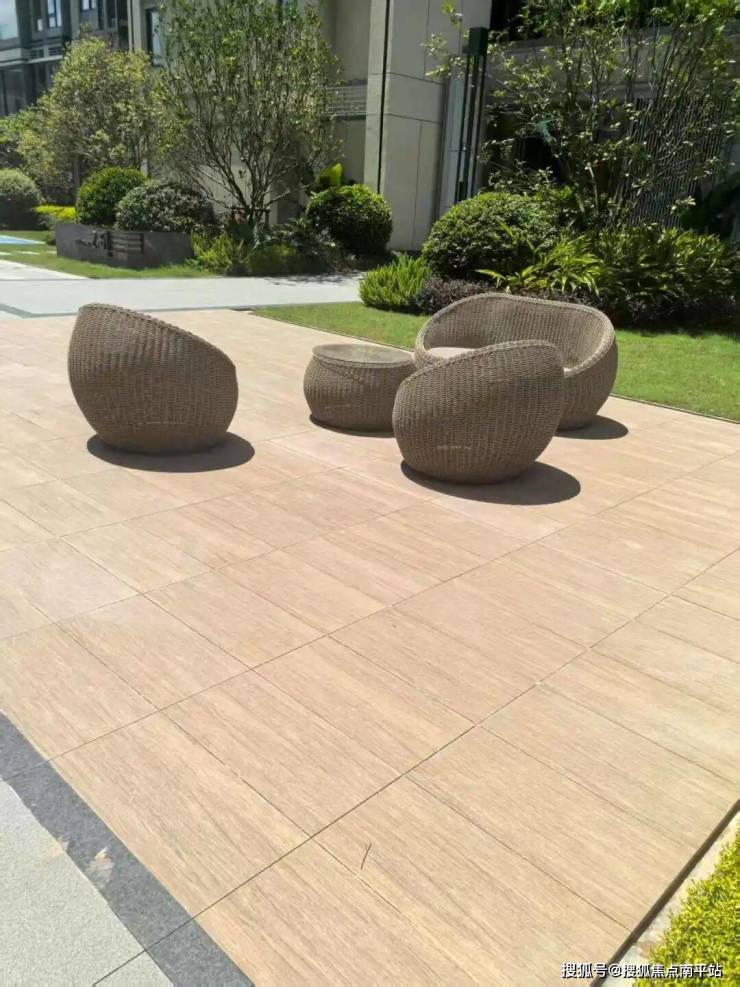 在宅间庭院的休闲区,晋瓷地铺石则换了一种 “温柔姿态”:这里选用的是 “仿木纹” 款式,浅褐色的石面上带着自然的木纹肌理,搭配林下的休闲座椅,成了业主午后读报、傍晚聊天的好去处。“踩上去像家里的实木地板,但比地板耐用多了,孩子经常在这爬着玩,擦一擦就干净。” 一位业主笑着说。