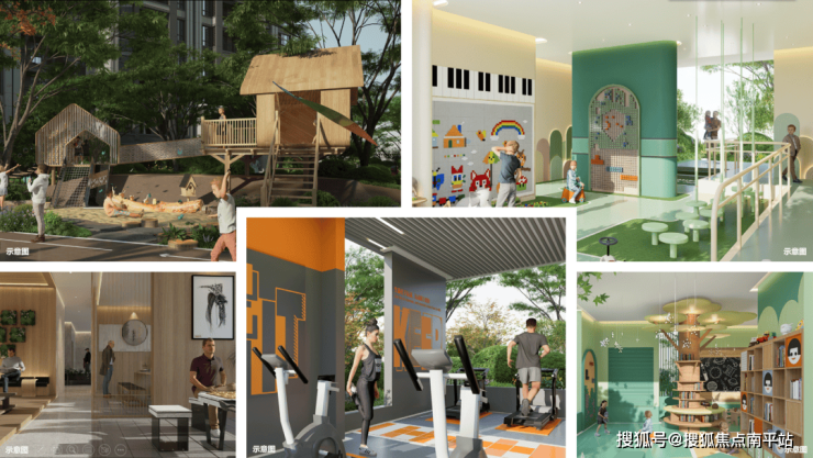 •四空间——架空层打造童玩天地、阅读天地、fit健身坊、棋牌交流四大场景空间,适合全年龄段业主的户外活动空间。