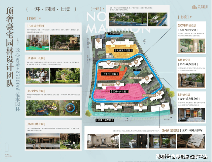 •项目的园林有1万5千多平方米,采用“一环四空间五花园”的设计理念,营造现代生活场景与自然森居体验相结合的全龄段业主户外活动空间。