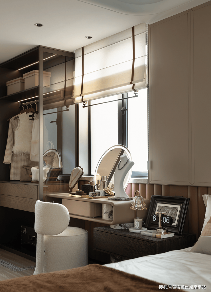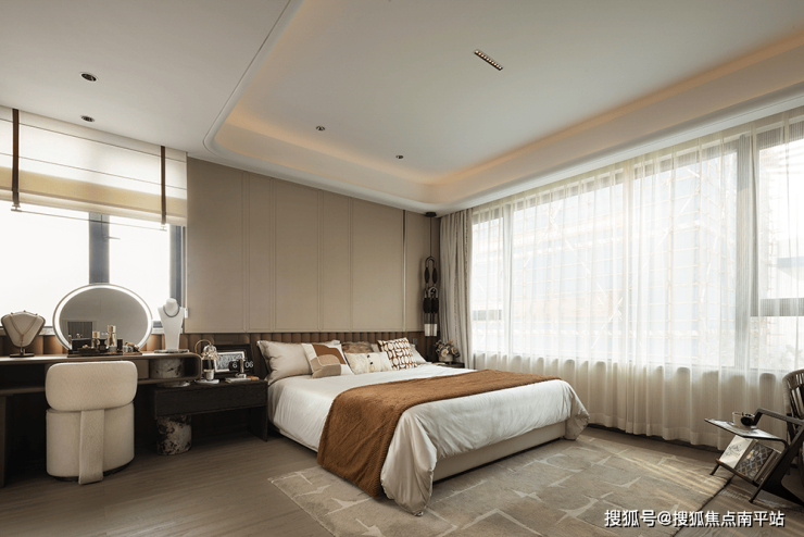 但空间的核心,始终向着「沉睡」温柔倾斜:床榻绵软如陷云间,厚帘垂落拢住满室静谧,马毛壁灯漫开恰到好处的暖调,悄悄催生出睡意的落脚。