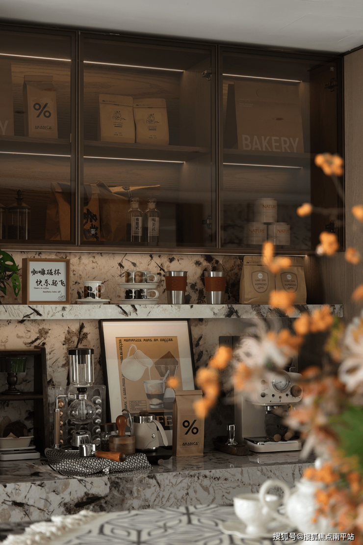 清晨的岛台总是最热闹的地方。女主人在咖啡机前忙碌,磨豆机嗡嗡作响,醇厚的咖啡香漫过整个餐厅。