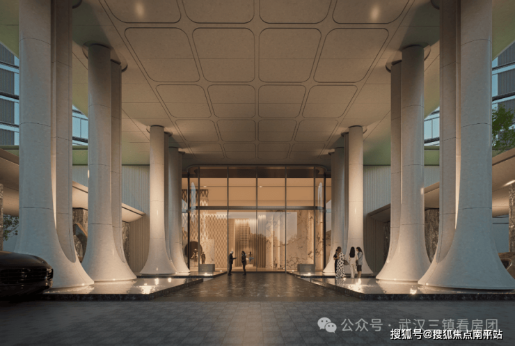 2列8根高10.5米仿石UHPC材料石柱,打造艺术门廊的生机之柱。