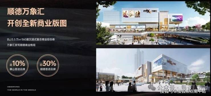 顺德最新、品质最高的城市消费新中心:中国商业地产百强TOP1,敬献顺德约19.6万㎡顺德万象汇购物中心,引进不低于30%顺德首进品牌与不低于10%佛山首进品牌,革新顺德商业,让商业消费体验领先全城。地下负一层无缝链地铁,实现无风雨出行与消费体验。