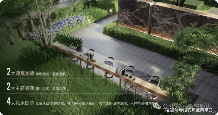 『中铁能建·阅臻府』项目超40米的星级酒店式归家门庭,打造酒店式环形落客区,彰显奢华与多重归家礼序。屋面空中式园林,绿景植被及水系应用丰富,内设石林栈道、景观会客厅、漫步道、无边际泳池、儿童嬉戏场、康养庭院、阳光草坪、健身&阅读&茶歇泛会所等多元主题空间。
