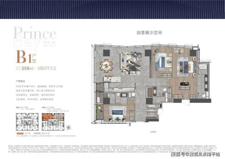 户型分布在高区33-47层,4个户型朝向,也可以两套打通做620㎡大户型,东南跟西南主要看海景,西北跟东北斗可以看部分海景+大小南山景观