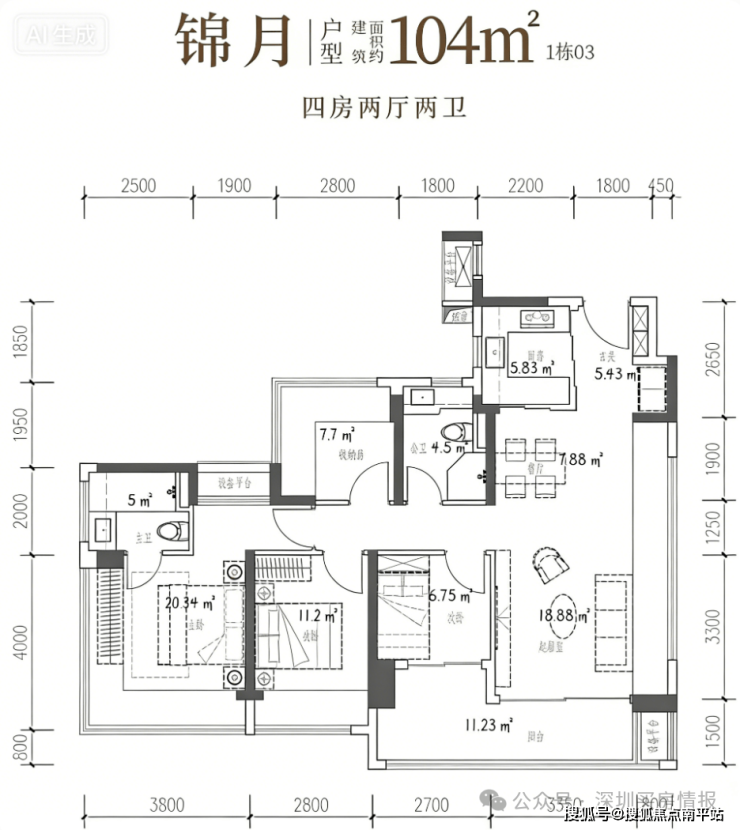 104-107㎡4 房 2 厅 2 卫