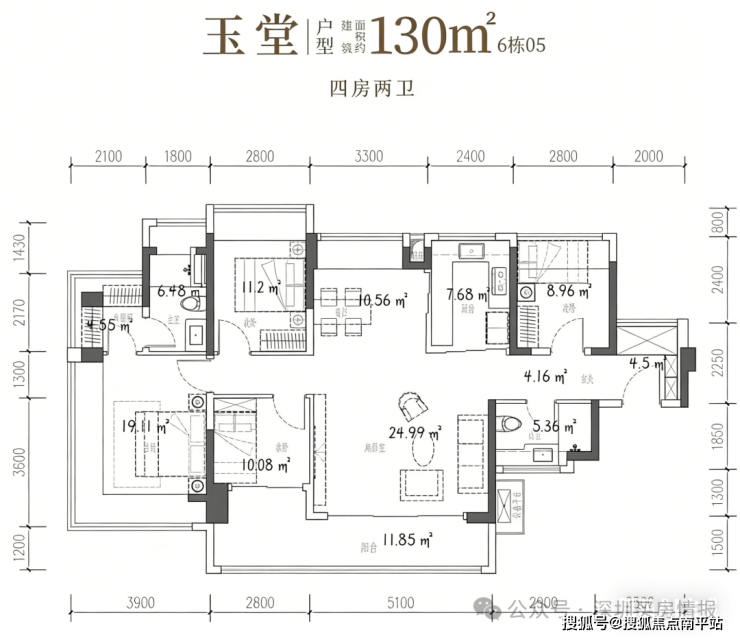 :四开间朝南,采光通透,主卧配备转角飘窗与设备平台,空间开阔,折后总价 462 万起,刚改家庭首选。