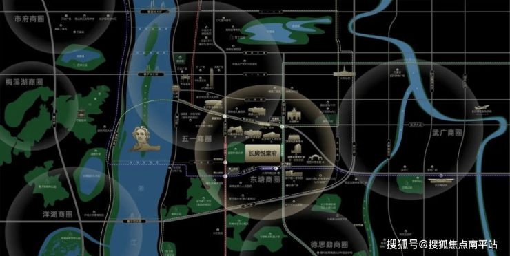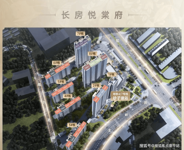 长房悦棠府则是其中位置最好、最靠近市中心的,4/7号线交汇-砂子塘站双地铁口上盖,北面紧挨长沙市工人文化宫,西边是国防科技大学社科院,东边与湖南中医药大学第一附属医院一路之隔。