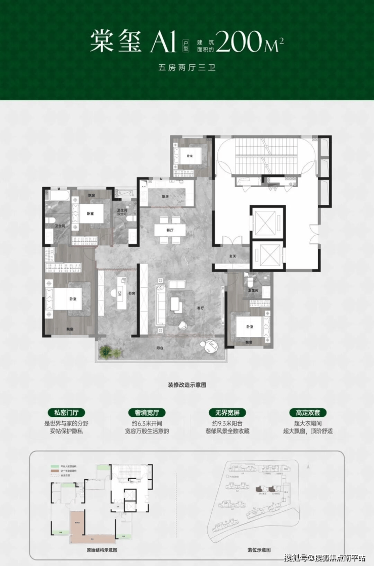 主城区16层小高,建面约143㎡五房新规小高层,和建面约200㎡城央全景大平层,同等面积享更多。