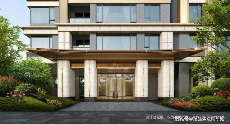 项目以宽约64米(含景墙)的庑殿顶大门为起点,搭配高约10.5米挑高的鎏金穹顶,尽显东方建筑的威仪与大气;同时配备首创的酒店式环岛落客区,让业主从归家第一步就享受到星级礼遇;