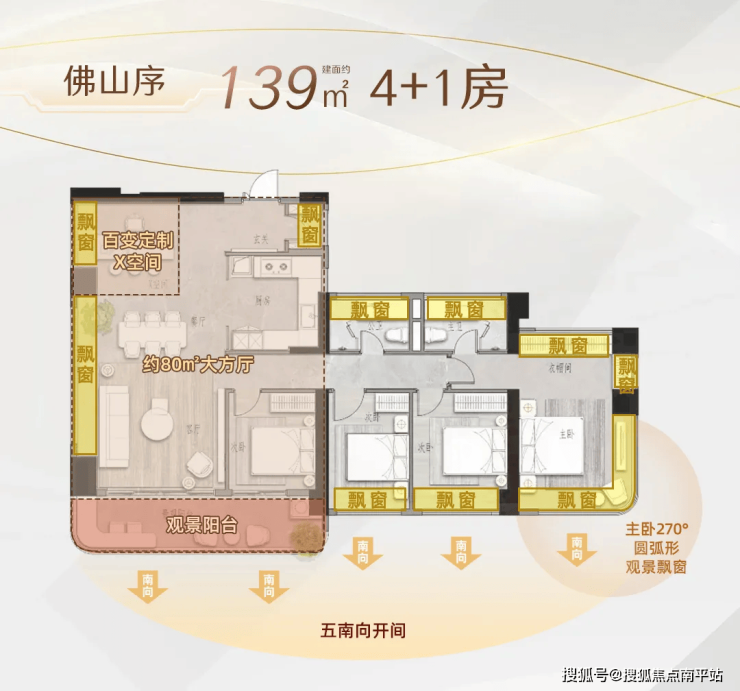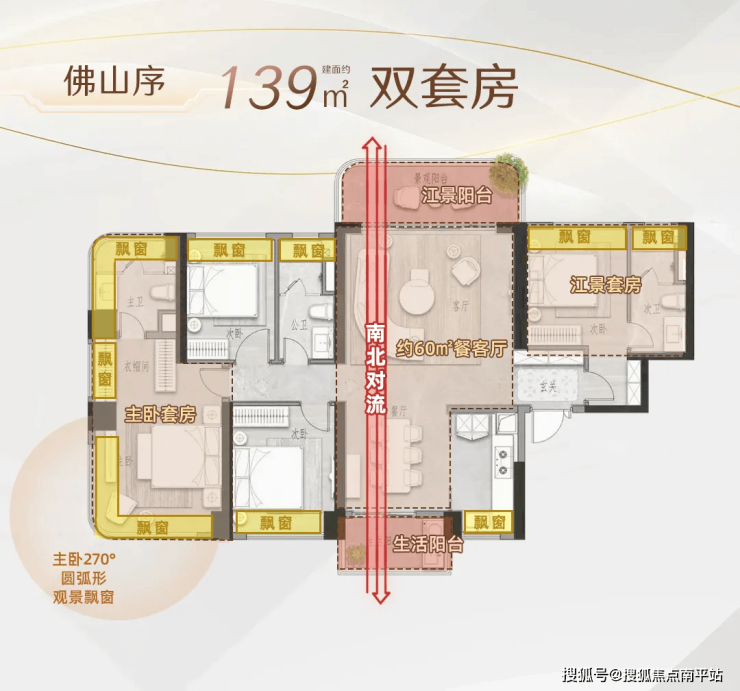 项目属于佛山第一个豪宅定位的一线望江超新规盘,阳台率30%,部分户型实用率超100%。