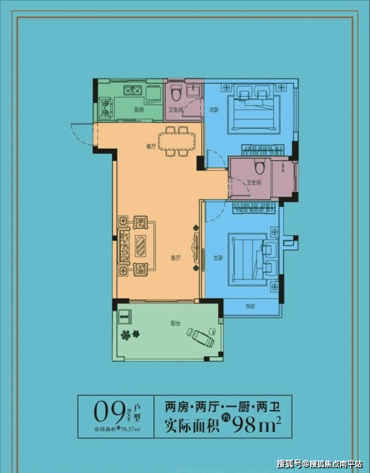 🏡05、09户型:两房两厅两卫南北通透,客厅开间3.9米,卧室开间3.6米,豪华两居室