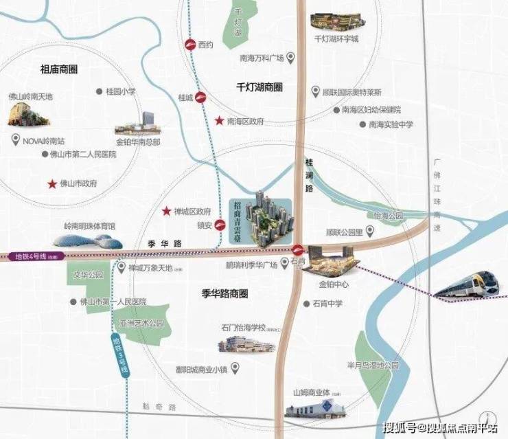 招商青雲臺的区位优势不言而喻。项目坐拥双地铁加持——直线距离佛山地铁3号线镇安站约800米,南侧靠近佛山地铁4号线(在建)和地铁6号线(规划)石啃站,交通便利性显著。