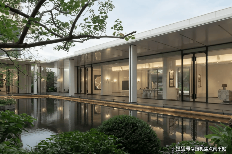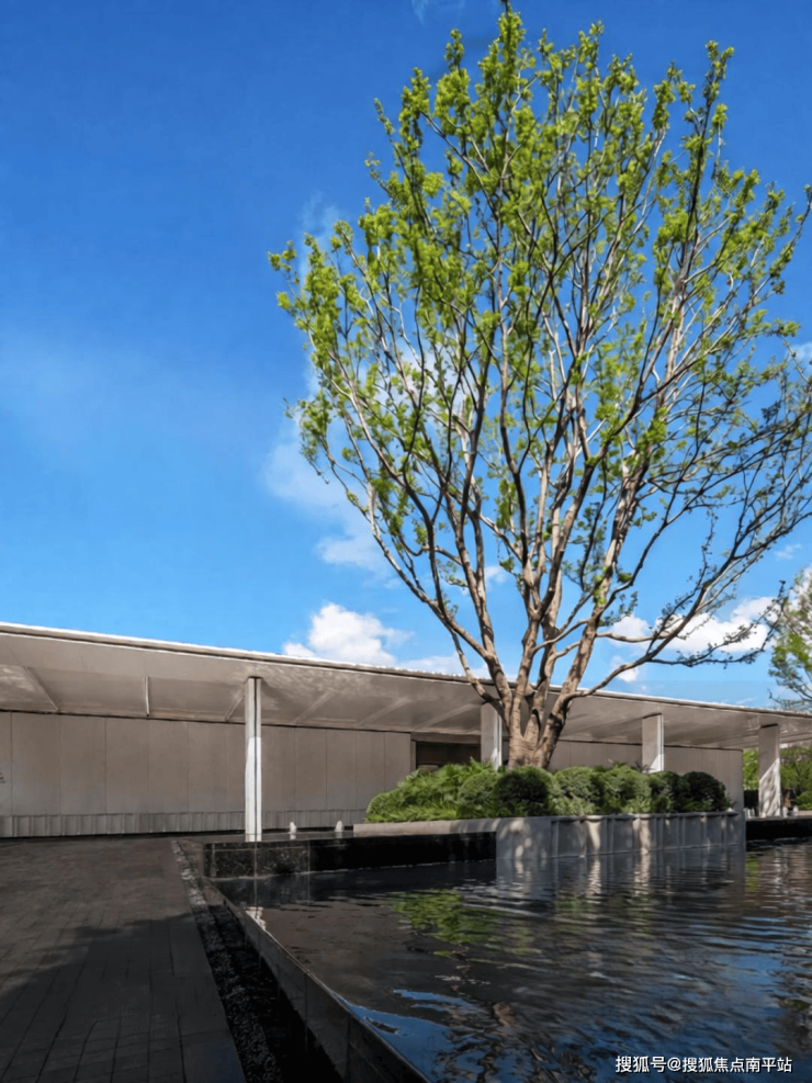园林景观以自然入画,步入沉浸式花园秘境。以“情绪化”布局景观,巧妙拉通室内外场域,呈现自然生长、森林水岸共生的雅致庭院。从秩序对称到自然放松,树木自由散落,悠然生长于浮岛之上,撑起满园绿意。姿态优雅的乔木,枝干苍劲有力,沉淀时光韵味。近百种植物交错生长,形成会呼吸的植物群落,自然密度林木如翡翠屏障,为居者绘制绿色精神场域。轻盈廊架悬浮水上,伴水归家,将内外繁华与静谧无缝衔接,尽显轻盈优雅。