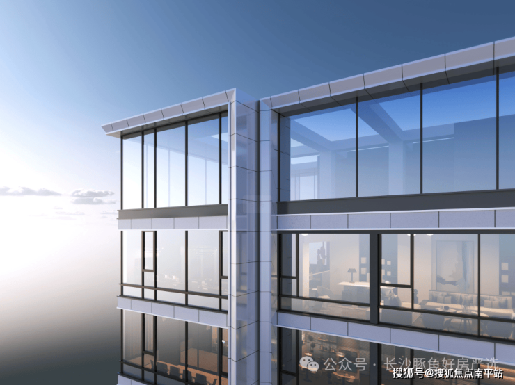 ·为了追求立面效果,最顶上屋面外围使用同楼层高度的玻璃;