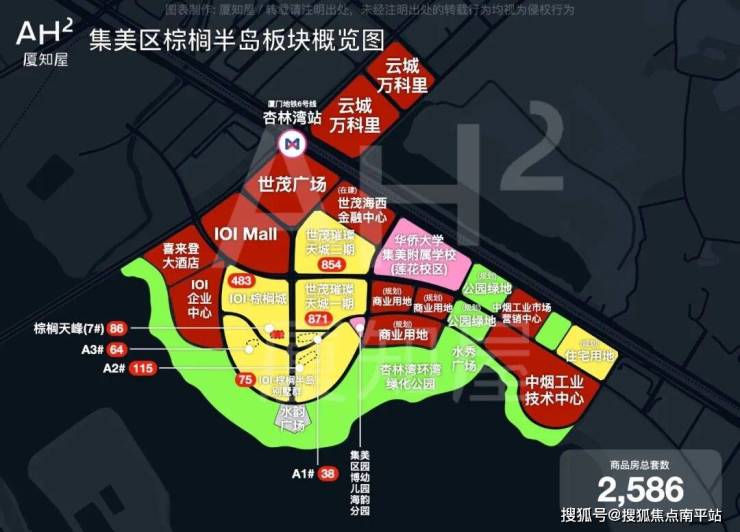 高端住宅:和集美新城其他板块遍布大量住宅项目不同,棕榈半岛上的住宅项目并不多,仅有IOI棕榈系与世茂璀璨天城,但其业态却十分丰富,也更高端,没有极小的户型,它并不是一个主打刚需上车的板块,而是更多主打改善的产品:带景观的改善型高层、高赠送的复式产品、低密的小高层、面向鼎豪的无遮挡景观大平层、面向终极置业群体的临湾一线别墅…而在岛内新房都进入5字头的时代,仍然能保持5万+二手成交价的,便是其中的一线景观住宅