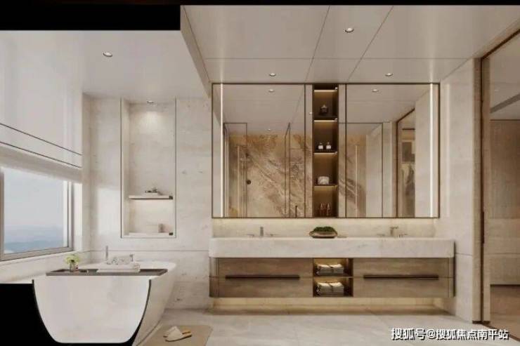 保利湖光里二期的交付标准也体现了对品质湖居生活的深度思考。入户玄关墙面采用木饰面交付,奠定归家时刻的温润质感。厨卫空间全线配置国内外高端品牌,细节打磨到位。例如,厨房窗户被优化为竖向开启,强化了室内空气对流和采光。主卧卫生间甚至贴心地预留下专属美妆冰箱的位置,巧妙解决高端护肤品的储存需求。