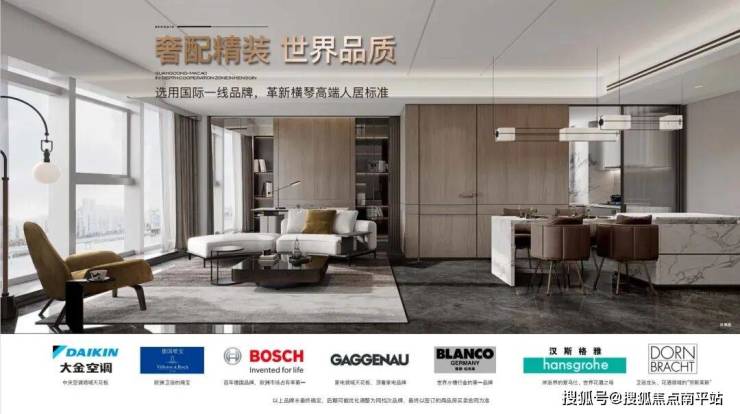 ▷交付标准:精装,选用国际一线品牌如大金、博世、嘉格纳、美诺、当代、铂浪高、汉斯格雅等
