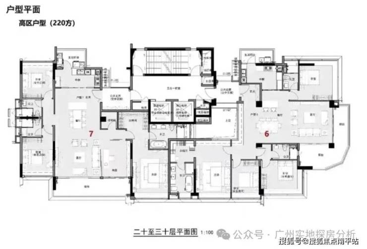 20-30层,2梯2户,户型为220㎡大平层