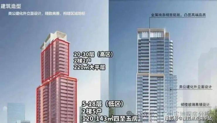 项目低区5-18层主推121-143㎡四至五房,高区20-30层推202-210㎡大平层,整盘仅打造92套,主打都是改善类客群。