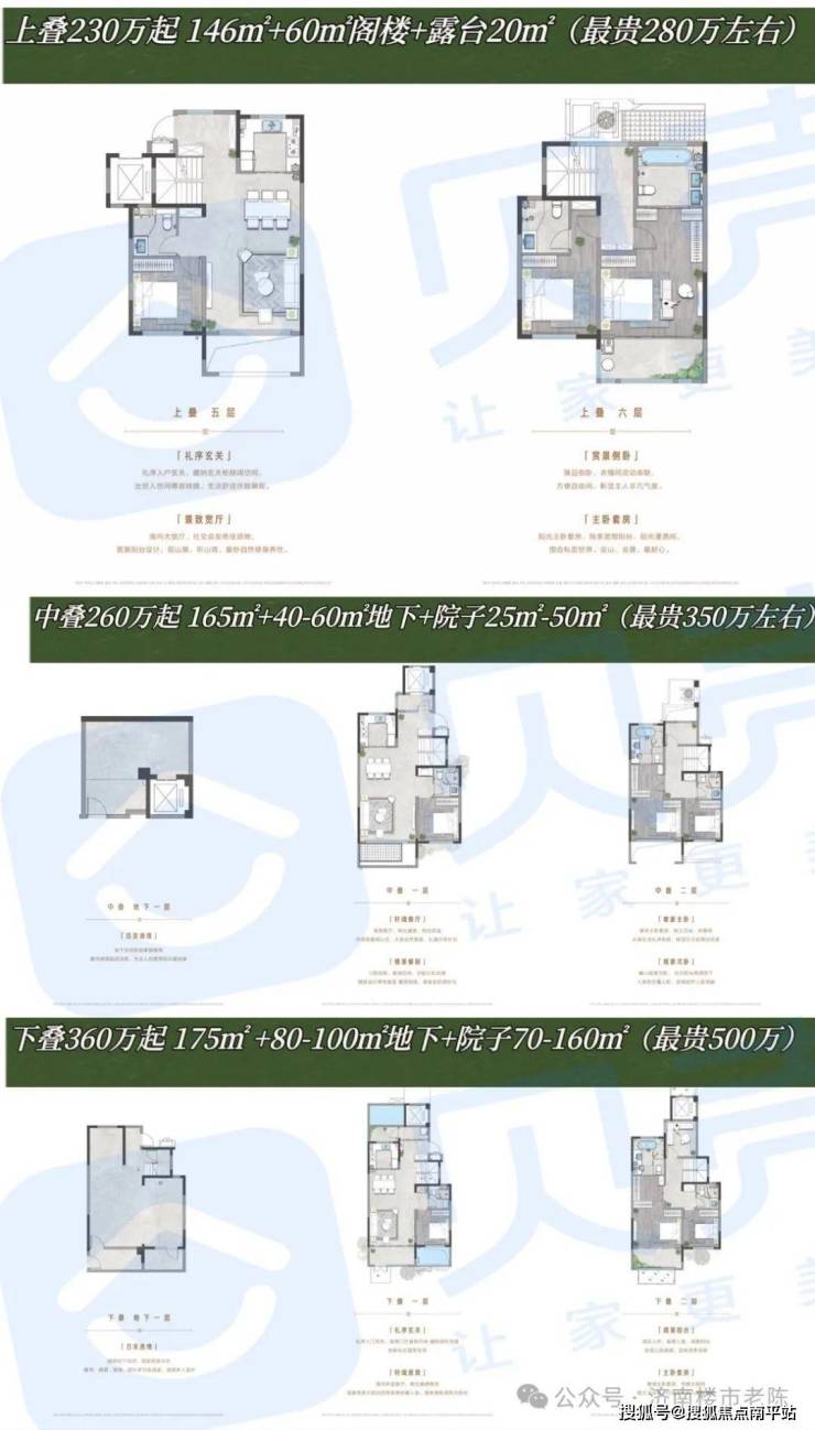 下叠:175㎡ (1层1室2厅1卫 2层3室2卫),80-100㎡地下(挑高5.6米),院子70-160㎡