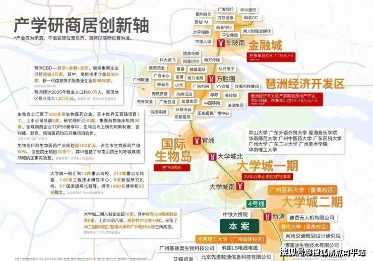 周边有13所高校,从这里出发至万博、琶洲、金融城都非常方便,几大黄金交通线路的开通,使得项目完美实现一步繁华,而且也自带11万方公园,实现了一半公园一半城的社区。