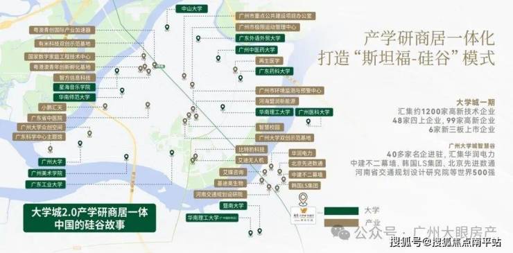 项目位于大学城二期-国际创新城板块,国际创新城共十平方公里,有暨南大学和广州医学院,整个创新城包括北翼的生物岛,核心的大学城和南翼的南岸起步区,南村地区,化龙地区,国际展贸城,在空间结构上形成了一核两翼。
