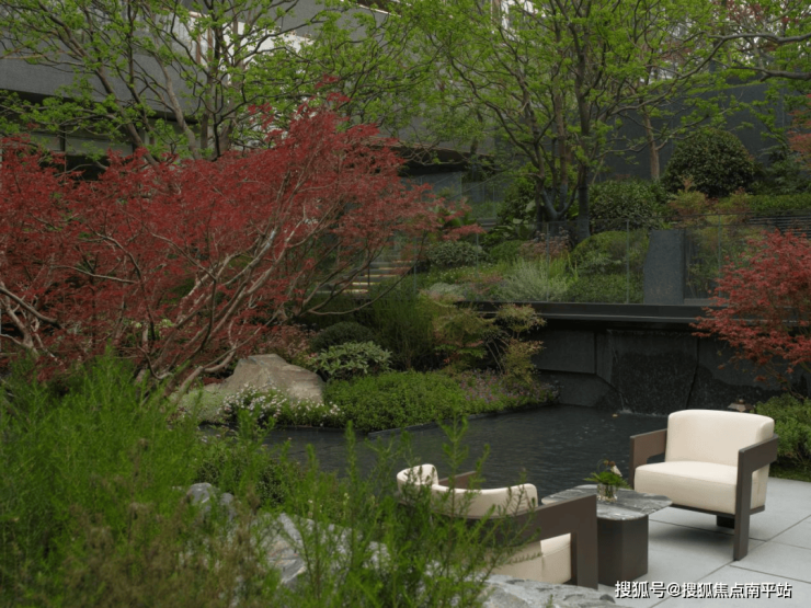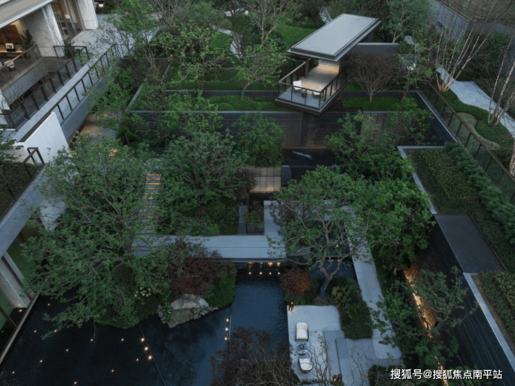 比如庭院利用地势高差,营造出瀑布、廊桥、平台、幽谷交错的多维场景。