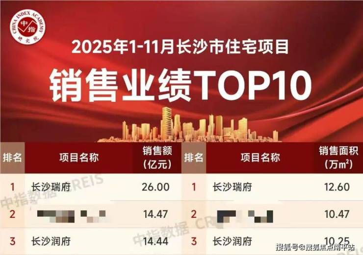 2025年1-11月,长沙瑞府销售额及销售面积稳居长沙单盘榜首。