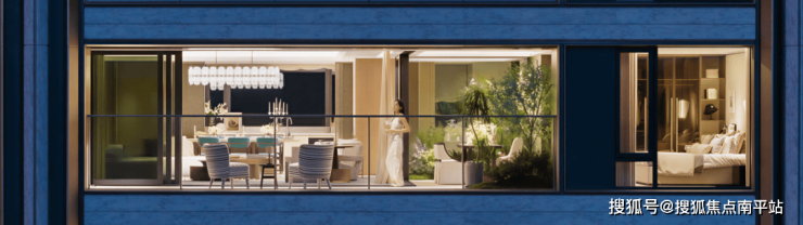 同时,户型的玄关两侧均设置室外平台,推门即见景,通透感达到极致。客厅配备极窄边框的隐轨大幅推拉门,可完全开启,让室内与L型空中庭院浑然相连。这种“情景交融”的设计,很有别墅生活的味道。