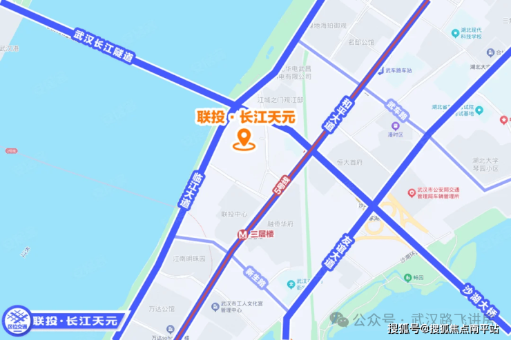 自驾:项目楼下就是临江大道,东侧靠近和平大道,北面还有长江隧道,附近友谊大道、武汉大道等主干道环绕,自驾较为便捷。