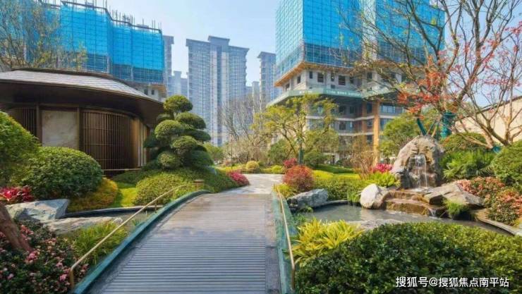 中庭藏四季,“一轴六园”布局藏着中式造园的巧思——南北双水景倒映着30米长的南廊亭与9.8米宽的北亭,散步时随手拍都是壁纸。园林还复刻了“借景、框景”手法,站在阳台就能将中庭风光框成天然画卷。
