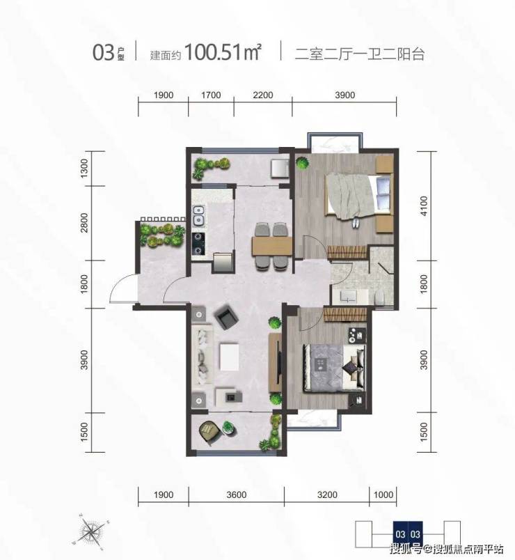 03户型丨建筑面积约100.51、100.73㎡