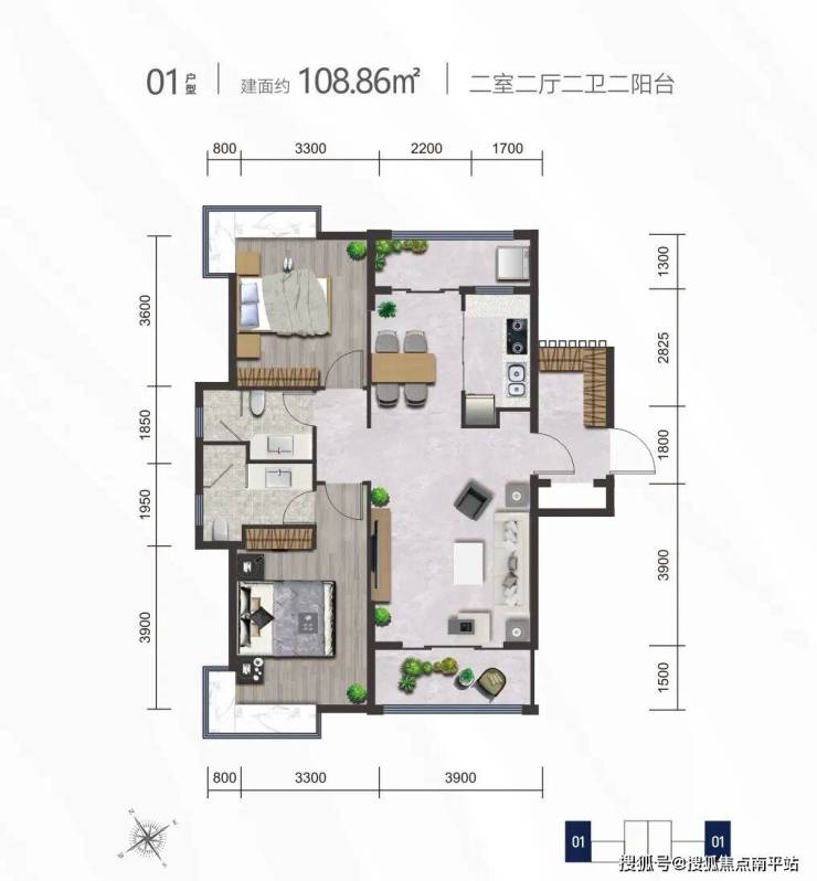 户 型:65-108㎡|1房-2房